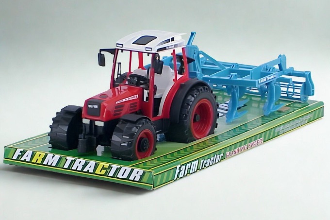 Tractor cu plug agricol pentru copii jucărie fermă, utilaj agricol cu remorcă, mașinuță tractor mare (culoare aleatorie)