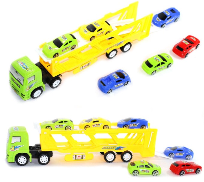 Acest camion trailer transport cu 6 mașinuțe oferă copilului o experiență completă de organizare și transport a vehiculelor preferate.