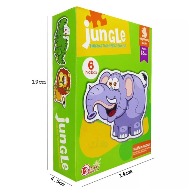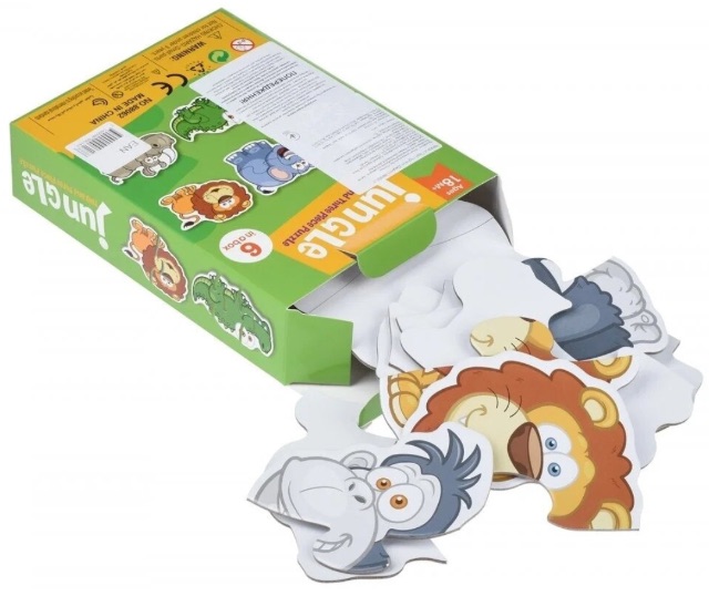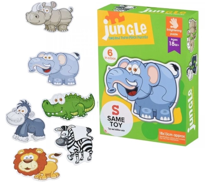 Acest set de puzzle Montessori din carton include 6 animale din junglă, fiecare format din 2–3 piese mari, adaptate special pentru primele activități de potrivire ale copiilor mici.