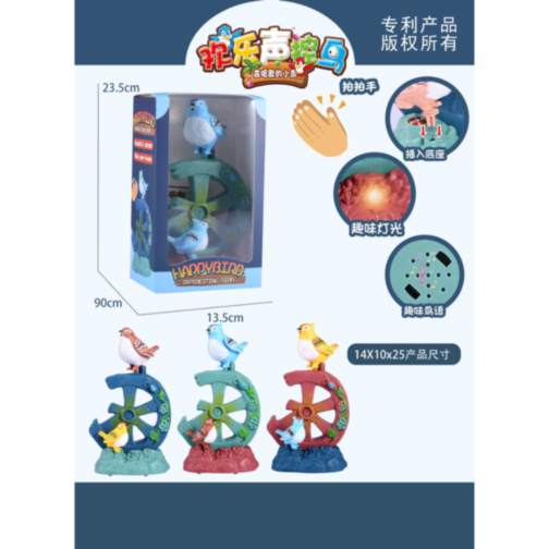 Această jucărie interactivă încântă cu designul său viu colorat și detaliile delicate ale păsărilor.