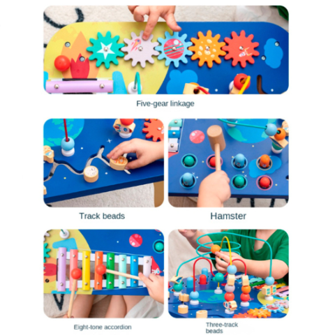 Această masă interactivă captivantă oferă micuților o călătorie prin spațiu, stimulându-le imaginația și abilitățile motorii fine.