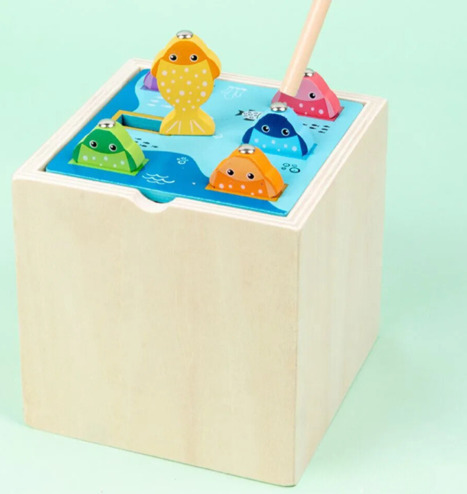 Jocul de pescuit cu peștișori magnetici este perfect pentru a îmbunătăți coordonarea mână-ochi, în timp ce copiii se distrează prinzând peștii colorați.
