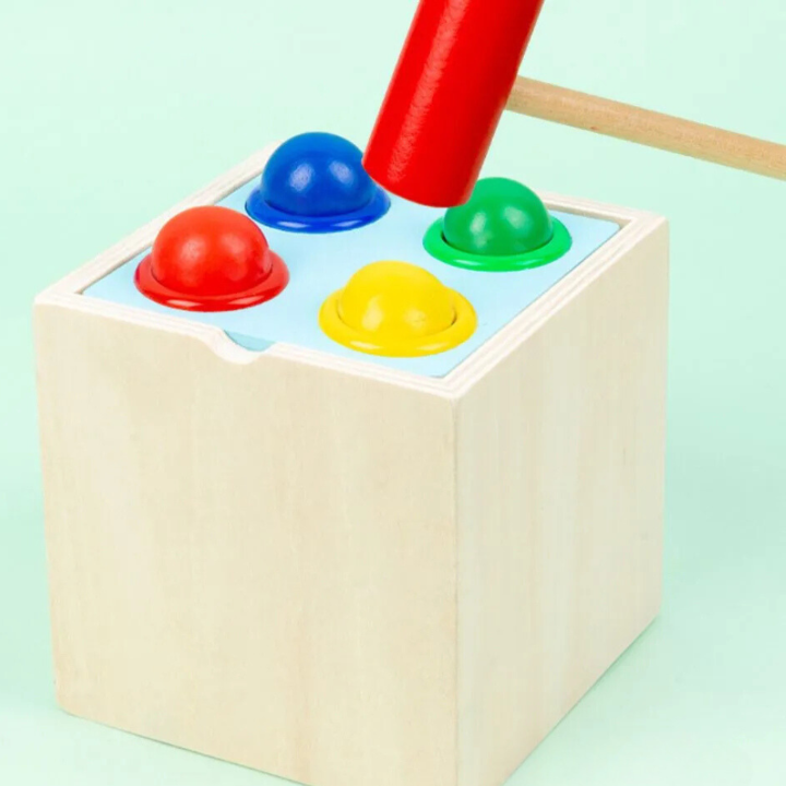 Activitatea cu bile și ciocan oferă o modalitate amuzantă de a exersa forța și precizia, prin lovirea bilelor în orificiile lor.