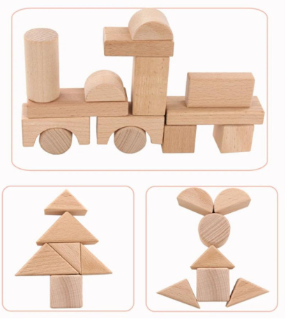 Blocurile din lemn natural sunt perfecte pentru a stimula imaginația și creativitatea copilului tău.