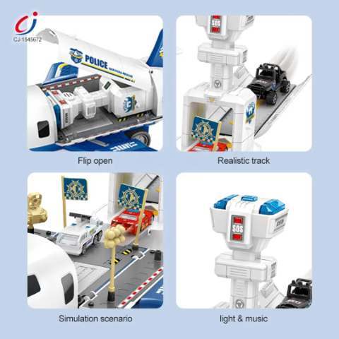 Aeronava de poliție impresionează prin designul său realist și culorile vii, oferind o experiență captivantă pentru cei mici.