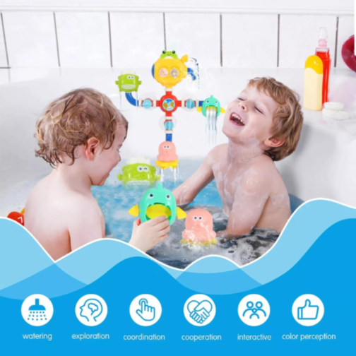 Transformă baia într-o aventură acvatică! Jucăria cu elemente rotative și simpatice animale îți va captiva copilul și îl va ajuta să se bucure de fiecare moment la baie.