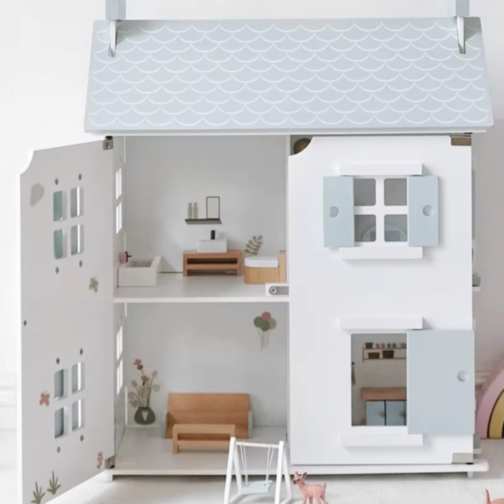 Această casă de păpuși este perfectă pentru joacă creativă, cu un design elegant și detalii delicate.