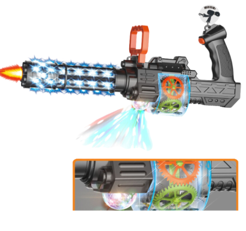 Mitraliera de jucărie cu efecte spectaculoase de lumină și sunet aduce bucurie și entuziasm în jocurile celor mici, transformând orice spațiu într-un adevărat câmp de aventură.