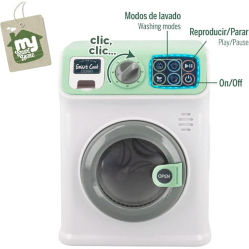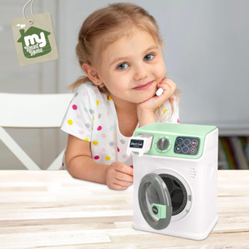 Panoul de control intuitiv le permite celor mici să selecteze programe de spălare imaginare, stimulându-le creativitatea.