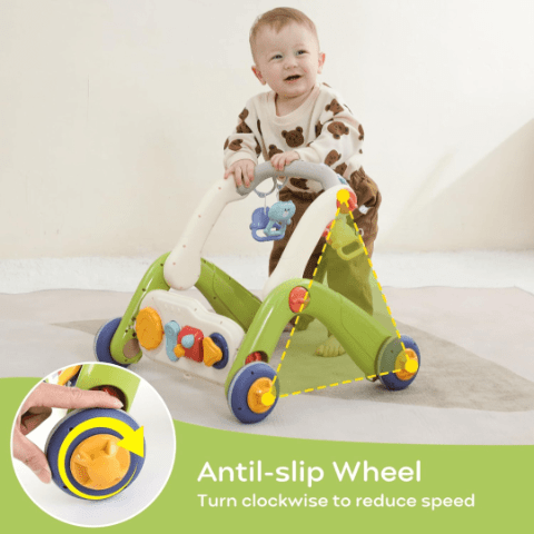 Un pachet complet pentru joacă, învățare și primii pași, într-o singură jucărie versatilă și ușor de montat.