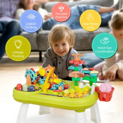 Măsuța interactivă pentru copii transformă fiecare moment de joacă într-o aventură educativă plină de culoare și activități captivante.