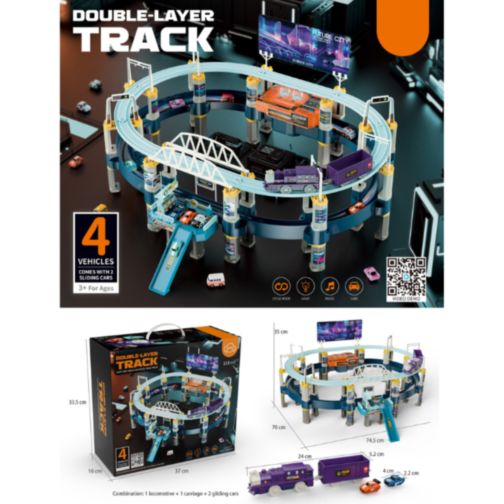 Pistă de Cursă pe Două Niveluri cu Mașini și Tren - Aventuri la Future City