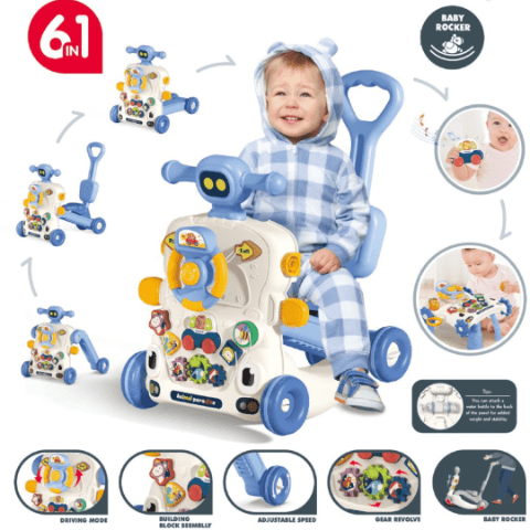 Transformă fiecare zi într-o aventură cu acest centru multifuncțional 6 în 1, care îl ajută pe bebeluș să descopere lumea prin joacă și mișcare.