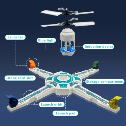 Descoperă jocul captivant cu drona zburătoare și platforma interactivă de lansare, unde distracția este la înălțime.