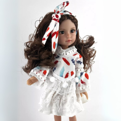 Această păpușă elegantă de 35 cm este o apariție de poveste, cu o ținută care inspiră visare și creativitate.