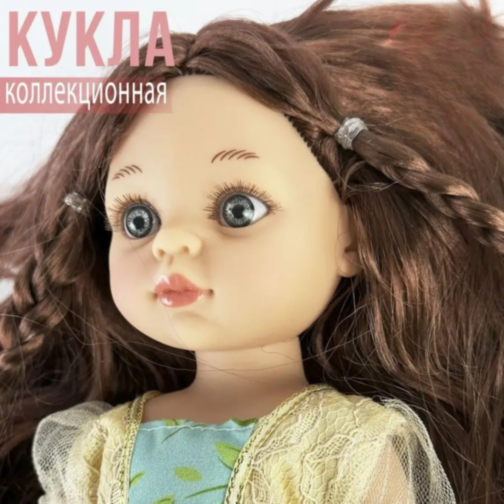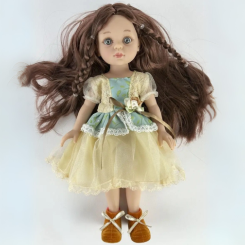 Păpușa încântă cu chipul său angelic, ochii mari și expresivi și genele lungi care îi dau un aer de poveste.