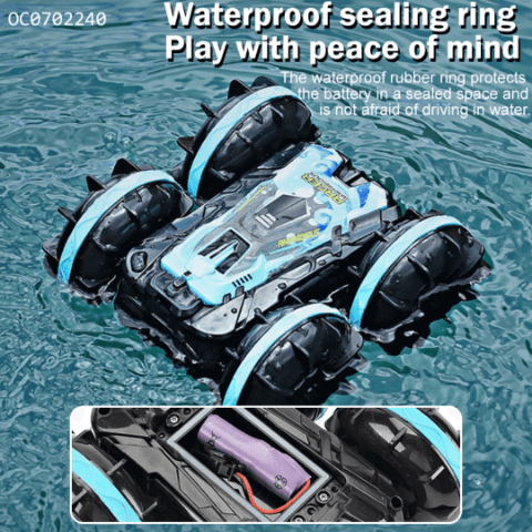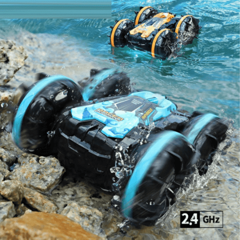 Disponibilă în culori vibrante, această mașinuță amfibie combină tehnologia cu aventura, fiind o alegere perfectă pentru copii activi.
