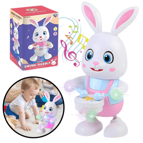 Iepurașul vesel cu tobe este pregătit să aducă distracție și voie bună copiilor.