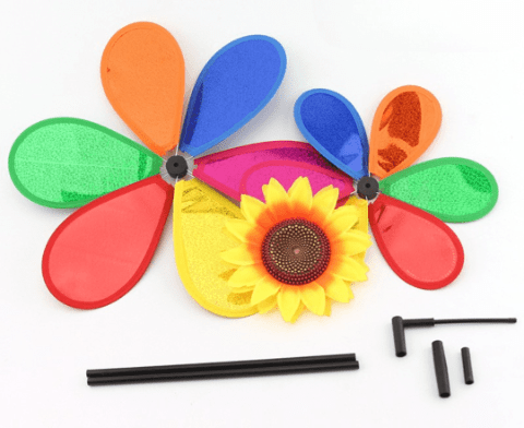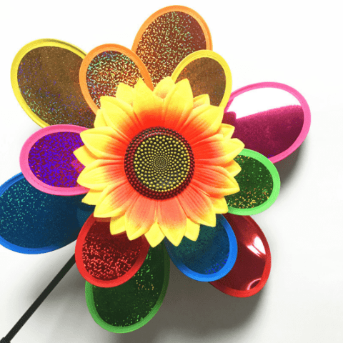 Morisca are petale multicolore strălucitoare care se învârt spectaculos în bătaia vântului.