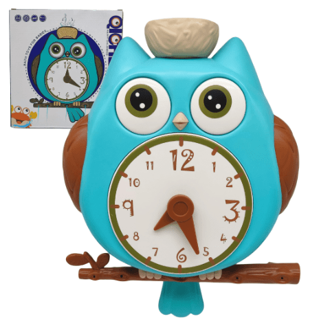 Bufnița colorată atrage atenția copiilor prin designul vesel și ochii mari expresivi.
