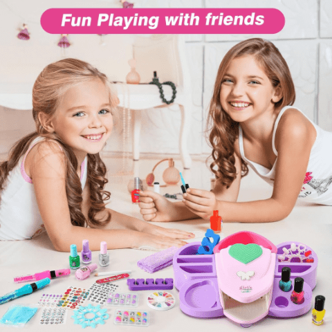 Fetițele pot exersa creativitatea prin aplicarea glitterului, stickerelor și a decorațiunilor strălucitoare pe unghii.