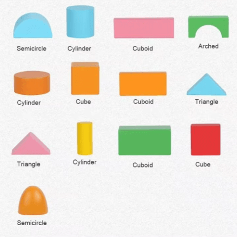 Setul include forme variate precum cuburi, cilindri, triunghiuri și alte forme geometrice, stimulând imaginația și capacitatea de rezolvare a problemelor.