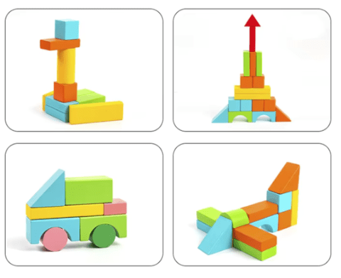 Copiii se pot distra construind turnuri, mașini, nave și multe alte structuri fantastice, antrenând astfel și coordonarea mână-ochi.