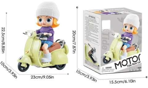 Motocicleta are funcție de rotire și efecte muzicale vesele, atrăgând atenția și menținând entuziasmul celor mici.