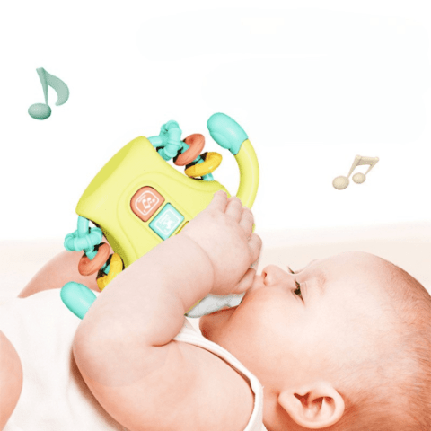 Butoanele interactive redau melodii vesele, sunete educative și cântece de leagăn, potrivite pentru calmarea copilului.