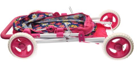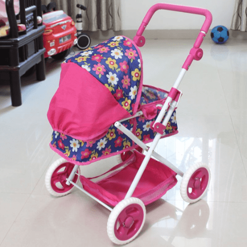 Acest căruț de jucărie colorat le oferă fetițelor bucuria de a plimba păpușile lor preferate ca pe bebeluși adevărați.