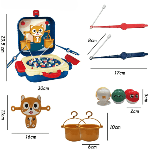 Jucăria funcționează pe baterii și creează mișcare continuă, transformând pescuitul într-o competiție interactivă.