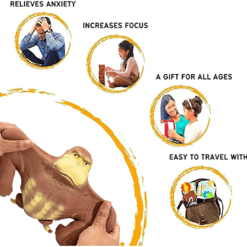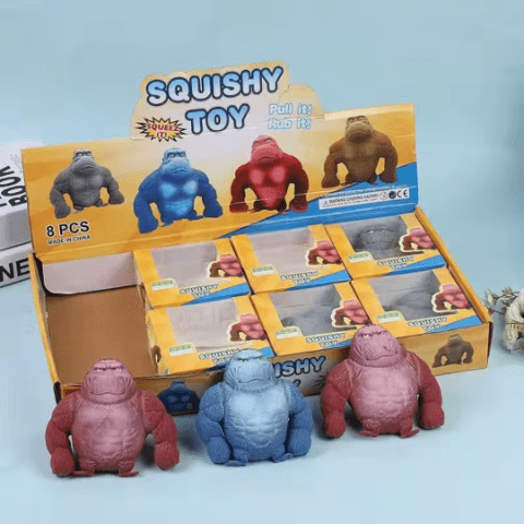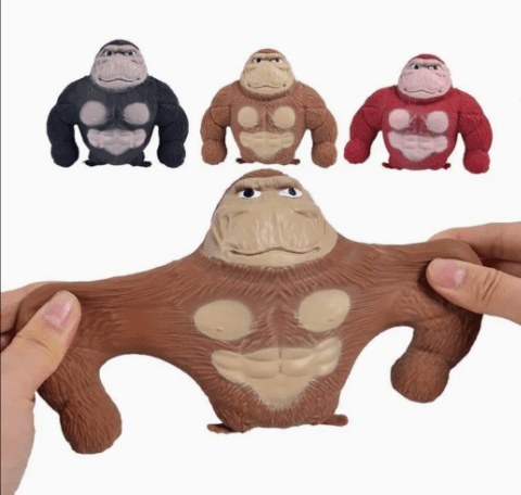 🦍 Distracție și relaxare într-o singură jucărie! Această gorilă extensibilă din cauciuc elastic se întinde până la 4 ori dimensiunea ei și revine la forma inițială – perfectă pentru eliberarea stresului și joaca interactivă! 🙌✨