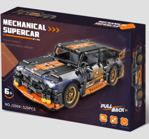 Spoilerul masiv și liniile aerodinamice asigură un aspect dinamic, iar construcția este o activitate captivantă care dezvoltă abilități creative și motrice.