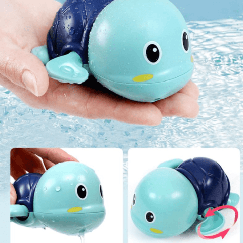 Mecanismul mecanic cu cheiță face ca țestoasele să înoate singure prin apă, fără baterii, oferind o distracție sigură și interactivă.