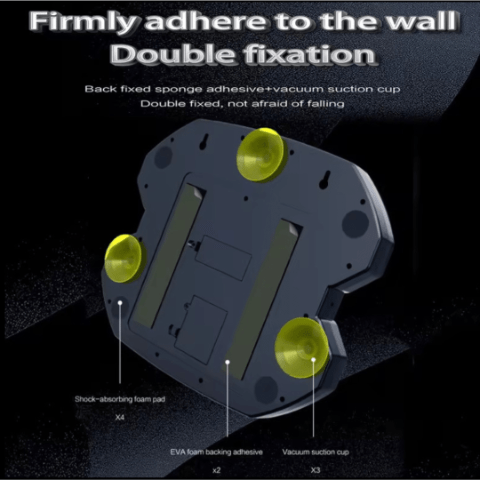Fixarea pe perete se face simplu, cu ventuze sau benzi adezive, fiind stabil și sigur pentru utilizare zilnică.