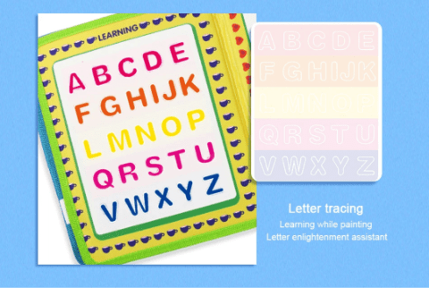 Literele colorate îi ajută pe cei mici să învețe alfabetul în timp ce se joacă și trasează contururile.