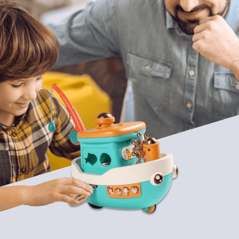 Cu funcția de pescuit magnetic, cei mici pot prinde peștișorii și crabii amuzanți, exersând coordonarea mână-ochi.