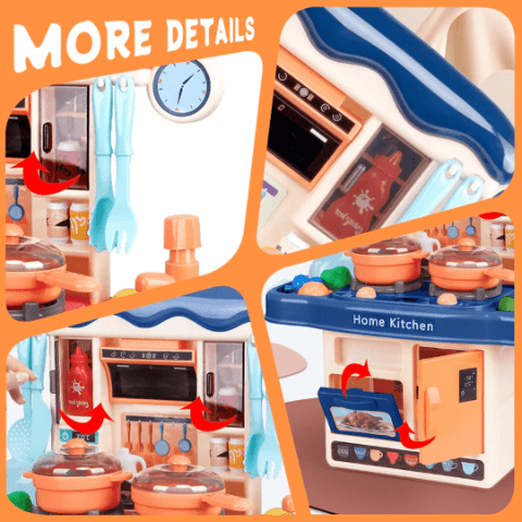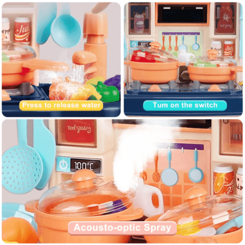 Funcția de pulverizare cu apă și sunetele de fierbere aduc un plus de realism, captând atenția și interesul celor mici.