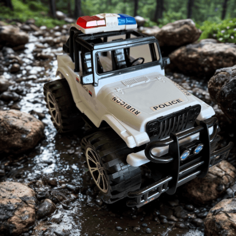 Acest Jeep de poliție Rubicon aduce acțiunea direct în camera copilului, cu un design realist și impunător.