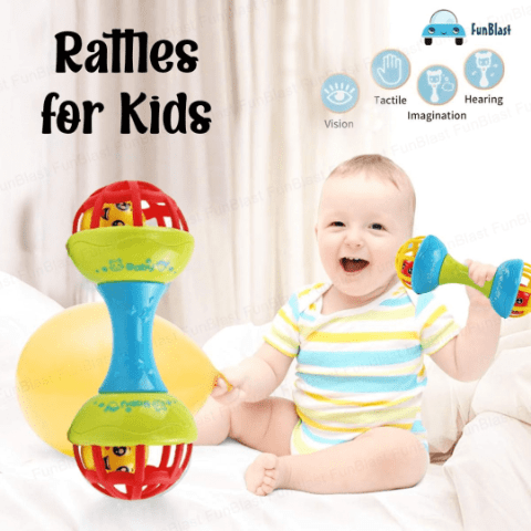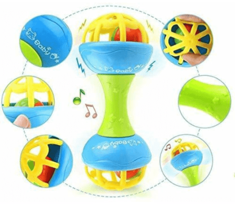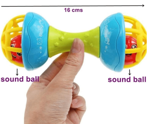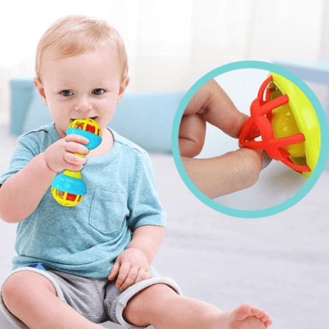 Sunetele vesele și mișcarea bilelor din interior dezvoltă auzul și curiozitatea copilului.