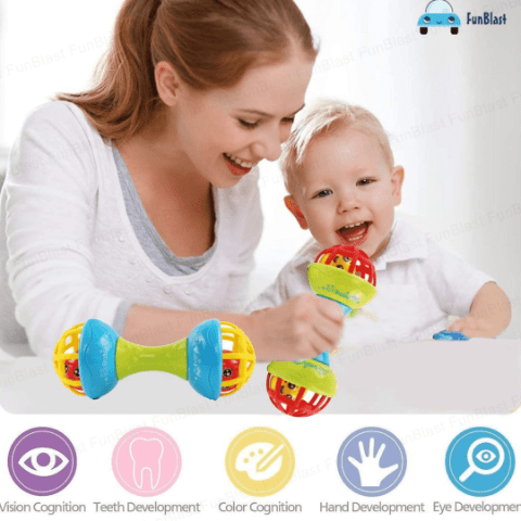 Jucăria stimulează coordonarea mână-ochi și motricitatea fină încă din primele luni de viață.