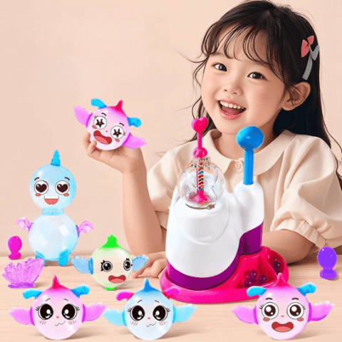 Această mașină magică transformă jocul într-o experiență creativă plină de distracție și culoare.