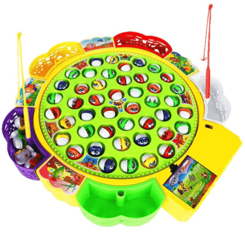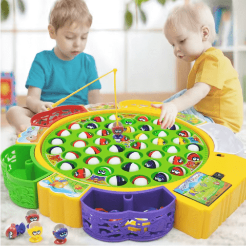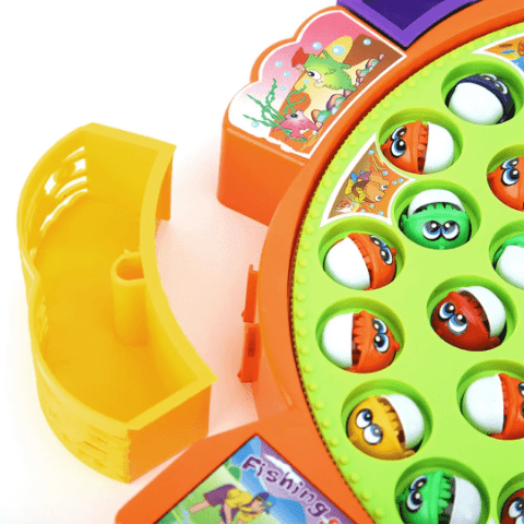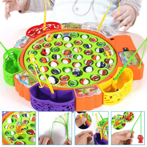 Copiii folosesc cele 5 undițe incluse pentru a prinde cât mai mulți pești, exersând răbdarea și coordonarea mână-ochi.