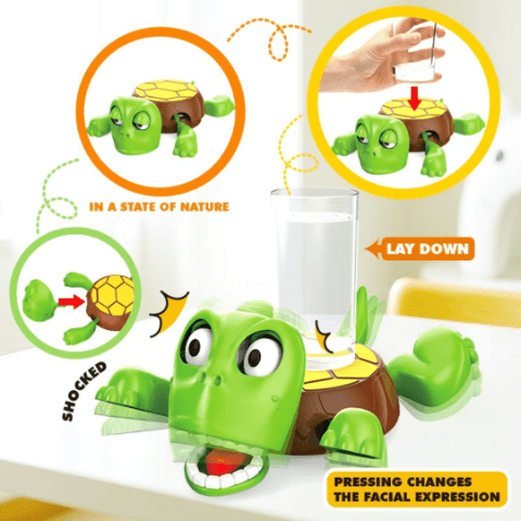 Prin simpla apăsare, Țestoasa reacționează ca și cum ar fi surprinsă — o scenă amuzantă de fiecare dată.
