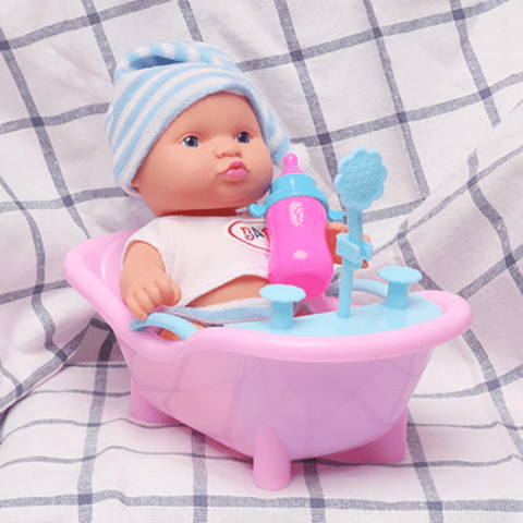 Copilul poate hrăni bebelușul cu biberonul după baie, imitând momentele autentice de îngrijire.