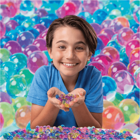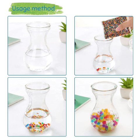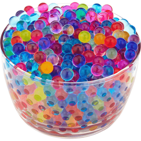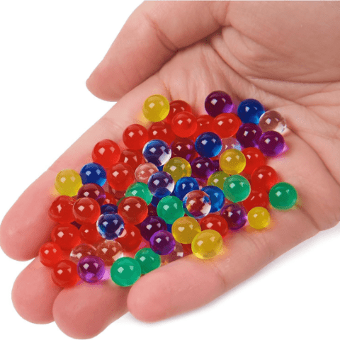 Mii de bile hidrogel colorate prind viață atunci când sunt scufundate în apă, transformându-se în sfere moi și strălucitoare.