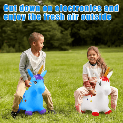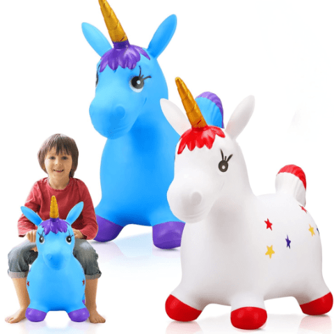 Copiii se îndrăgostesc imediat de unicornul gonflabil cu coarne aurii, care aduce magie și mișcare în joaca zilnică.