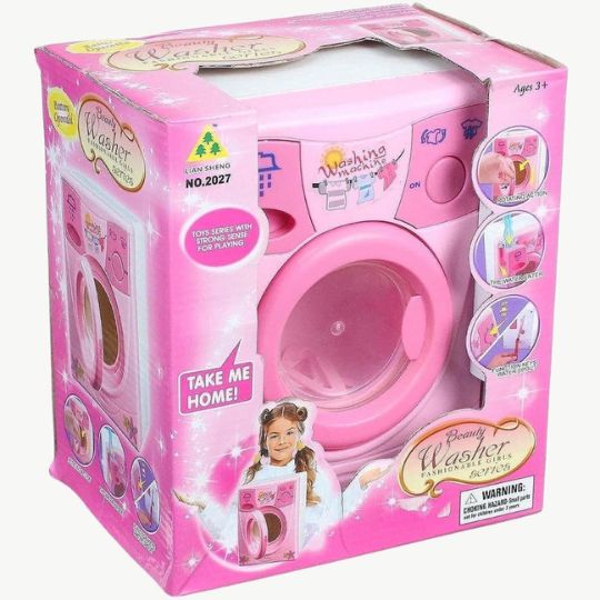 Copiii pot folosi mașina de spălat în jocuri imaginative, dezvoltând creativitatea și coordonarea.