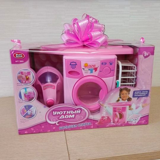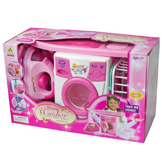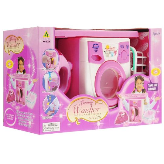 Acest set de joacă include o mașină de spălat jucărie cu design realist și culori atractive, inspirate din electrocasnicele reale.