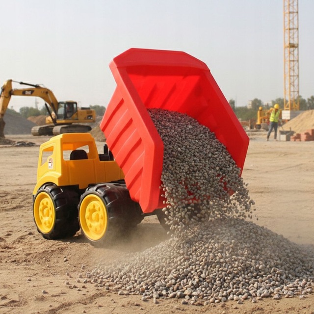 Acest camion basculant pentru copii transformă orice joacă într-un adevărat șantier de construcții, stimulând imaginația și jocul de rol.